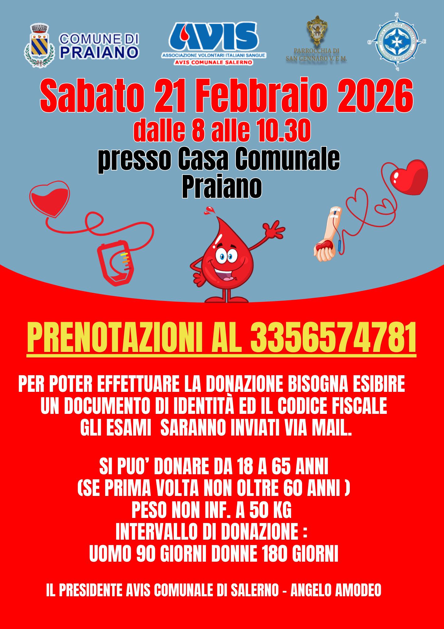 Giornata del Dono del Sangue - Sabato 21.02.2026 - Praiano